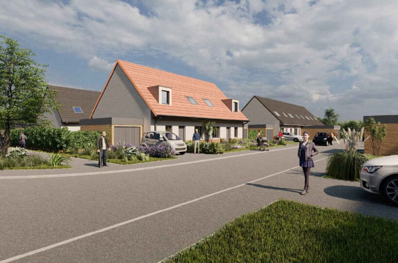 Un nouveau quartier résidentiel entre nature et vie de village Sur le site réhabilité d’un ancien dépôt de betteraves, ce lotissement de 26 maisons...